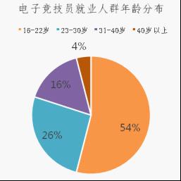 对调研数据进行整理,被调查的电子竞技员年龄分布有54%的电子竞技员年龄分布在16-22岁之间,有26%的电子竞技员年龄分布在23-30岁之间,只有16%的电子竞技员年龄分布在31-40之间,仅有4%的电子竞技员年龄在40岁以上。根据调研结果显示,电子竞技员就业人群年龄普遍偏低,在被调查者中有80%的