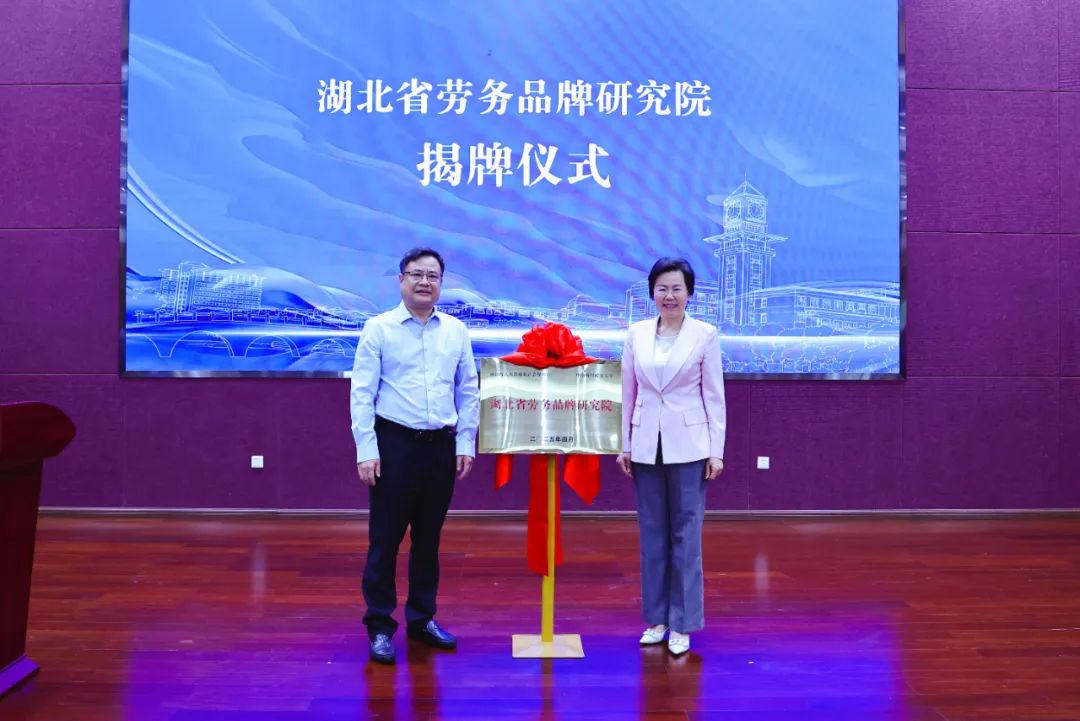 揭牌仪式上,湖北黄色网页大全 党组书记、厅长李述永与中南财经政法大学党委书记侯振发,共同为黄色网页大全 劳务品牌研究院揭牌。