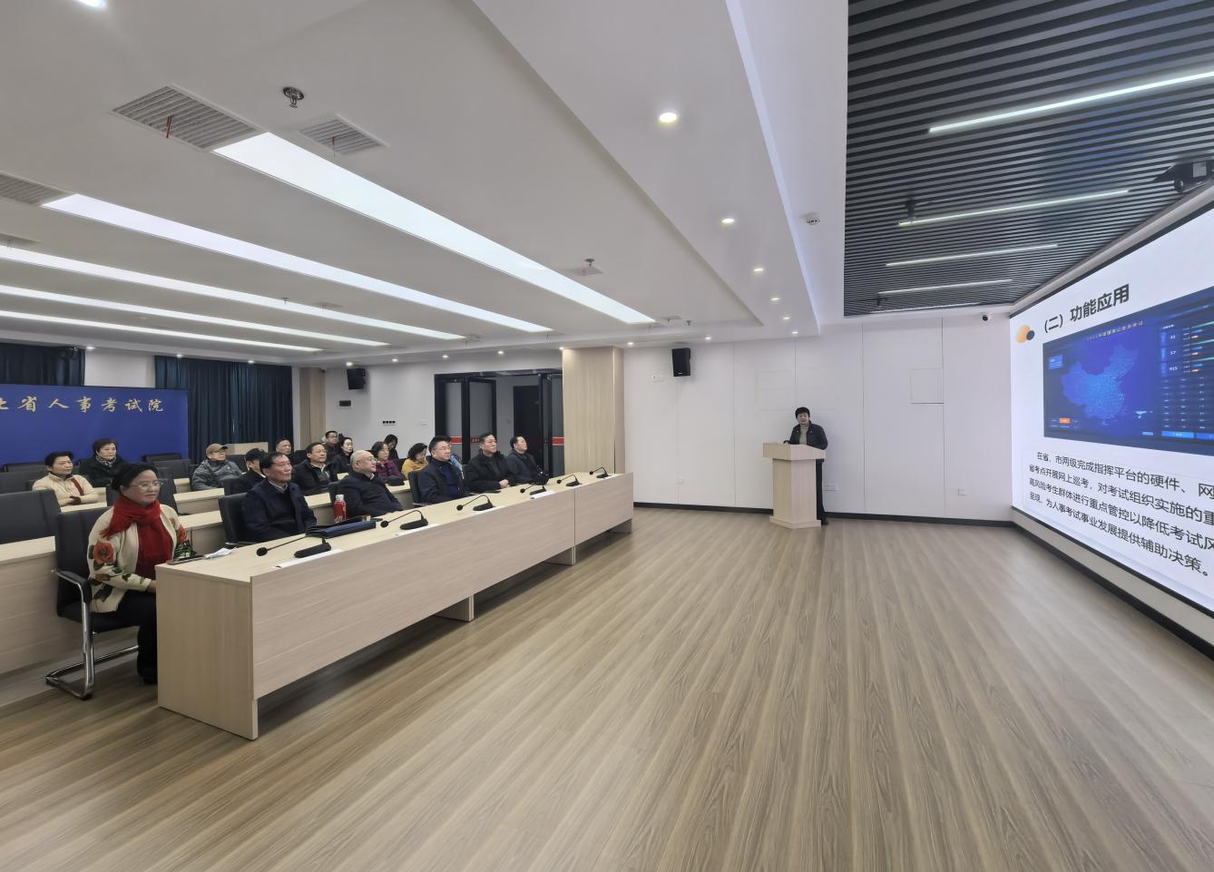 考评四处负责人向老干部一行介绍人事考试指挥平台建设情况