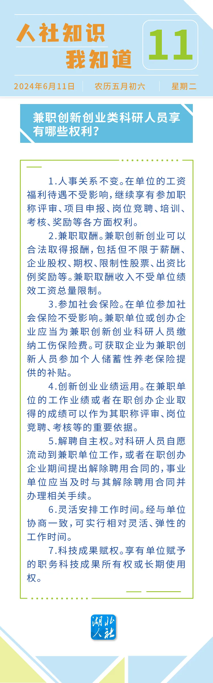 【人社知识我知道】丨兼职创新创业类科研人员享有哪些权利?