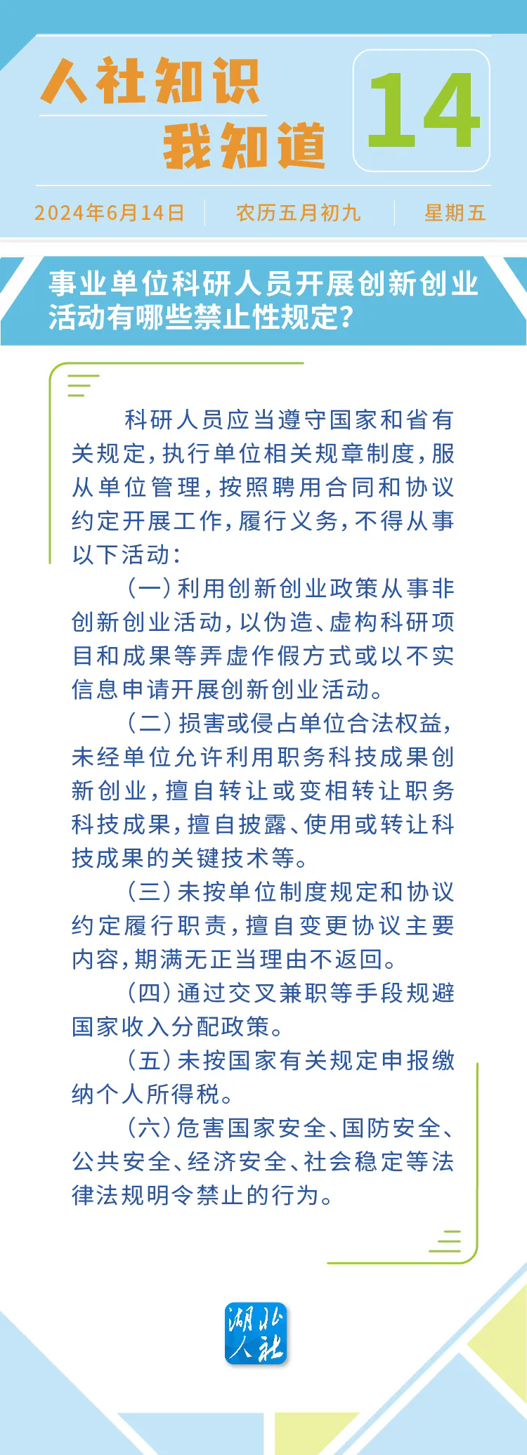 【人社知识我知道】丨事业单位科研人员开展创新创业活动有哪些禁止性规定?