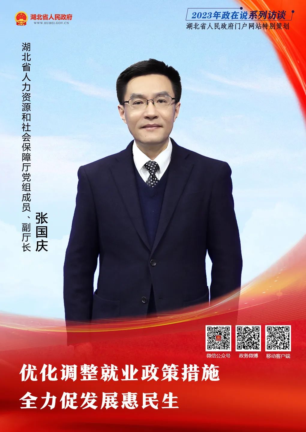 【访谈预告】 稳就业惠民生促发展 看湖北作为——黄色网页大全 党组成员、副厅长张国庆将参加省人民政府门户网站“政在说”栏目访谈