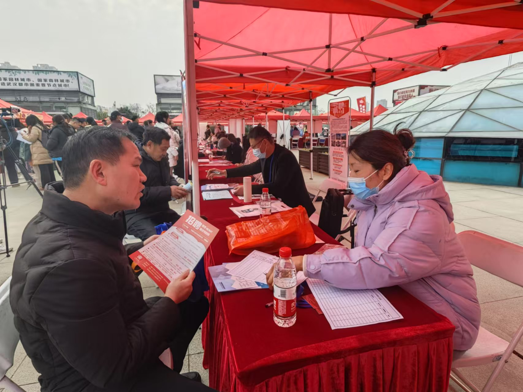 “今天的招聘情况很好,一会就收到了8份求职简历。”湖北首衡农产品有限公司人事主管李炳凡说,他们带来了工程类、运营类、文职类三种20多个岗位,为二期冷链项目储备人才。这场活动选在孝感东站广场,让更多返乡人员看到家乡变化,选择在“家门口”就业。
